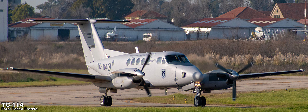 TC-114, nº/serie BJ-41, (UC-12B) entregado a la US Navy como 161324 en 1981, incorporado en el Escuadrón de Entrenamiento 35 (VT-35) de NAS Copus Christi, Texas, convertido en TC-12B, almacenado en el AMARG el 17 de mayo de 2017, adquirido por la Fuerza Aérea Argentina, arriba al país el 24 de enero de 2023, ingresado al Área Material Río IV para su pintado como los anteriores Huron, matriculado TC-114.