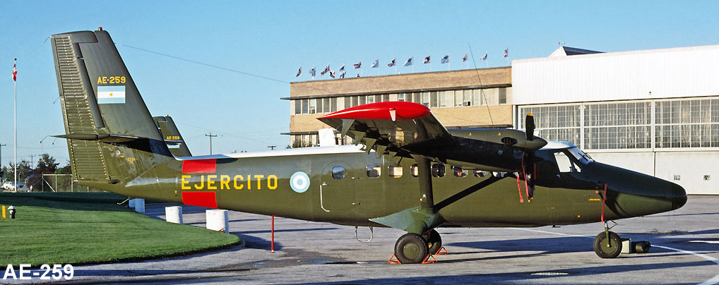 AE-259, (DHC-6-200), nº/serie 140, salida de fábrica el 17/06/1968, primer vuelo el 20/08/1968, adquirido por el Ejército Argentino, matrícula AE-259, incorporado al Batallón de Aviación de Apoyo de Combate 601 con asiento en Campo de Mayo, destruido tras impactar contra la ladera del cerro Nuñorco Chico el 5/01/1975, en proximidades del paraje La Angostura, Tafi del Valle, provincia de Tucumán mientras realizaba una operación de reconocimiento, falleciendo sus 13 ocupantes, entre los que se encontraba el Comandante del II Cuerpo de Ejército, General de Brigada Enrique Salgado, además del Comandante de la 4ta Brigada de Infantería, el General de Brigada Ricardo Muñoz, el Coronel Eduardo W. Cano, los Teniente Coronel Pompilio Schilardi, Pedro S. Petrecca y Oscar R. Bevione, los Mayores Aldo E. Pepa, Antonio Zelaya, Héctor A. Sánchez y Roberto Biscardi, el Capitán Roberto Aguilera, el Teniente 1ero Carlos Correa y el Sargento 1ero Aldo Linares.