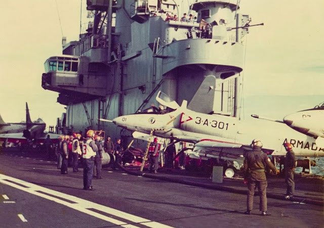 Los A-4Q operaron desde la cubierta del 25 de Mayo hasta el 9/5/1982, el 12 de ese mes son desembarcados y pasan a volar desde la Base Aeronaval de Río Grande, Ushuaia, desde ahí la Tercer Escuadrilla Aeronaval (3EA) realizó 39 misiones de combate, se perdieron tres aeronaves, hundiendo a la fragata HMS Ardent y a la HMS Antelope.