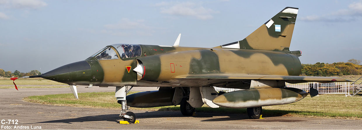 C-712, (Mirage IIICJ), incorporado por la Heyl Ha'Avir como CJ-40 en agosto de 1963, desactivado, vendido a la Argentina con 1449 horas, arribado al país el 29/3/1983, puesto a punto en el Área Material de Río IV, asignado el 1/8/1985 al Escuadrón 10 de la X Brigada Aérea como C-712, transferido al Escuadrón 55 de la IV Brigada Aérea el 7/11/1986. Dado de baja tras presentar problemas de estabilidad el 12/6/1989, tras 2409.10 horas, preservado en el Museo Nacional de Aeronáutica de Morón desde el 13/11/1992.